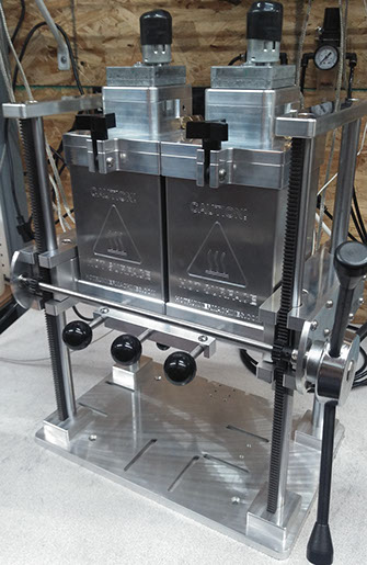 The custom heat controller and electronic thermometer are used to control & monitor the plastic temperature. The plastic can be heated directly inside the machine or in presto pot to increase production. Color & additives can be added to the plastic in the machine and will be properly mixed.